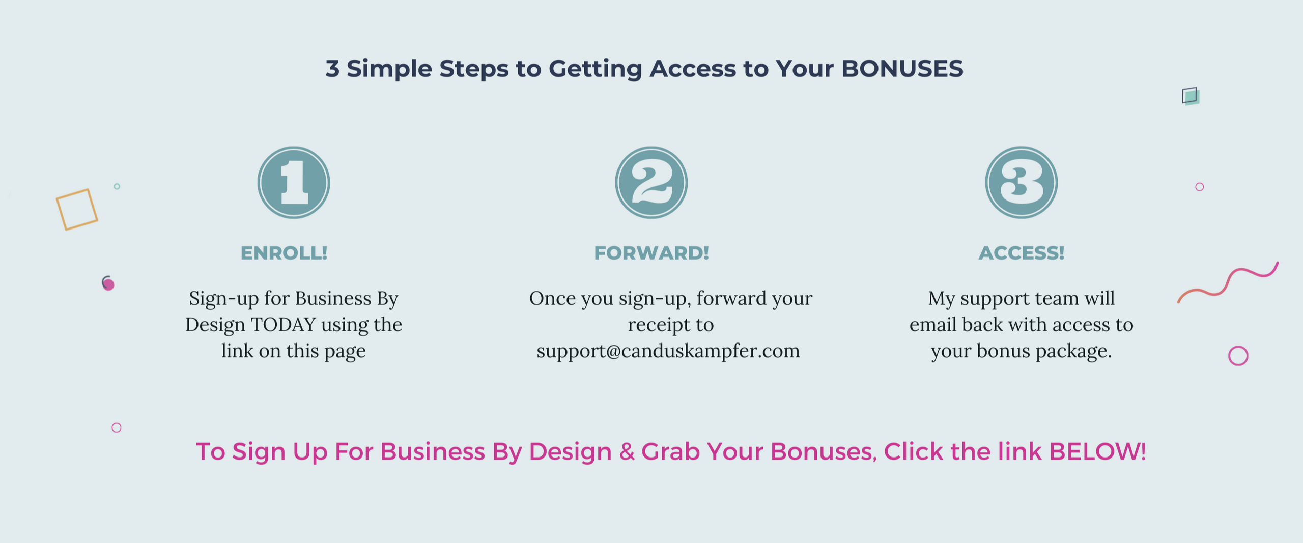 Candus Kampfer's BONUSES Exclusively for Business By Design Members!